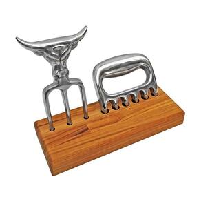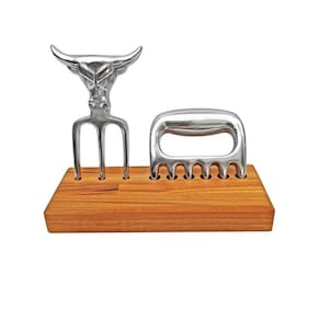Kit Garra + Tridente + Base Para quem curte um bom churrasco, o Garfo Tridente serve para dar suporte ao cortar sua carne durante o churrasco e os nossos garfinhos para petiscos substituem os frágeis palitos de madeira, trata-se de uma ferramenta indispensável para todo bom churrasqueiro. Transmitindo segurança na hora do corte, tem um design diferenciado com excelente empunhadura e formato de cabeça de boi. Proporcionando maior penetração na carne consequentemente, maior firmeza para o corte de peças maiores. Kit com 1 garras de urso + 1 Garfo Tridente + Base de madeira Além de ser uma peça de decoração imponente. Marca: Engenheiro Do Churrasco