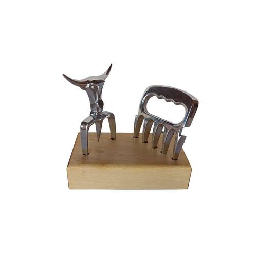 Acompanha base de madeira para deixar seu garfo em exposição.