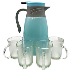 Kit garrafa térmica 1 litro com 4 xicaras canecas vidro 220ml Cor: azul Nome do produto: kit garrafa térmica 1 litro com 4 xicaras canecas vidro 220ml Fuy290 jarra capacidade de 1000ml, com 4 copos de vidro sodo-calcico com capacidade de 220ml cd