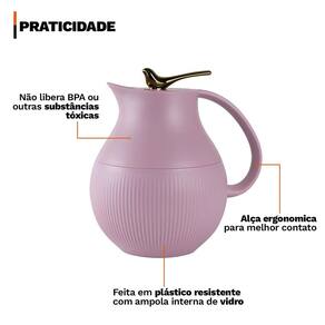 Conjunto garrafa térmica café chá 1l premium pássaro dourado com 4 xícaras pires cerâmica premium 210ml Atenção Este kit foi desenvolvido para quem busca sofisticação, praticidade e beleza em cada detalhe. A garrafa térmica premium pássaro dourado 1 litro mantém suas bebidas quentes ou frias por horas, com design moderno e acabamento elegante que combina com qualquer ambiente. O conjunto de 4 xícaras com pires em cerâmica premium adiciona charme, delicadeza e requinte à mesa posta, tornando este kit perfeito para receber convidados, reunir a família ou transformar o café da manhã em um momento especial. Informações do produto A garrafa térmica pássaro dourado alia praticidade e estilo. Com capacidade de 1 litro, é ideal para conservar café, chá, água ou sucos na temperatura ideal por mais tempo. Seu sistema de alavanca abre e fecha facilita o uso no dia a dia, garantindo eficiência térmica e vedação segura. Produzida em polipropileno resistente e com frasco interno em vidro, oferece durabilidade e desempenho superior. As xícaras em cerâmica premium com capacidade de 210ml cada, acompanhadas de pires delicados, proporcionam um toque sofisticado e diferenciado à mesa. Compatíveis com micro-ondas e fáceis de limpar, unem resistência, praticidade e estilo, sendo perfeitas para servir café ou chá em ocasiões especiais ou no cotidiano. Especificações técnicas do produto - design elegante e versátil que valoriza a mesa posta e combina com qualquer estilo de ambiente - sistema de alavanca abre e fecha que garante praticidade, vedação eficiente e preservação da temperatura - frasco interno em vidro que conserva líquidos quentes ou frios sem alterar o sabor - estrutura resistente em polipropileno com acabamento premium e detalhe pássaro dourado no topo da tampa - alça ergonômica que proporciona conforto e facilidade no transporte - xícaras e pires em cerâmica premium na cor rosa, com alta resistência e fácil limpeza - capacidade de 210ml em cada xícara, ideal para café ou chá em quantidades generosas - compatibilidade das xícaras com micro-ondas, garantindo mais praticidade no dia a dia Ficha técnica do produto - capacidade garrafa: 1 litro - altura garrafa: 23 cm - diâmetro garrafa: 17 cm - peso garrafa: 650 g - material externo garrafa: polipropileno premium - material interno garrafa: vidro - sistema: alavanca abre e fecha com vedação eficiente - conservação: até 6 horas líquidos quentes e até 12 horas líquidos frios - produto: atóxico - capacidade xícaras: 210 ml cada - medidas xícaras: 11,3 cm comprimento, 8,8 cm largura, 6,5 cm altura - material xícaras e pires: cerâmica premium rosa - quantidade peças conjunto: 4 xícaras e 4 pires Antes e depois do primeiro uso - antes do uso: lave a garrafa com água morna e sabão neutro para remover resíduos de fabricação. Realize o pré-aquecimento com água quente ou o pré-resfriamento com água fria conforme a bebida desejada. Lave as xícaras e pires com detergente neutro e esponja macia. - após o uso: lave a garrafa manualmente, evitando produtos abrasivos e máquina de lavar louças. Evite quedas e impactos, pois o frasco interno é de vidro. Para as peças em cerâmica, evite choques térmicos e lave sempre com cuidado para preservar a durabilidade. Itens inclusos no pacote - 01 garrafa térmica café chá 1 litro premium pássaro dourado - 04 xícaras de cerâmica premium rosa 210ml - 04 pires de cerâmica premium rosa Todas as fotos são reais dos produtos. Qualquer dúvida, estamos à disposição. Dúvidas frequentes 01 - o kit é novo Acompanha 03 - a garrafa mantém a bebida quente por quanto tempo R: a tecnologia de isolamento com frasco de vidro mantém líquidos quentes ou frios por várias horas.