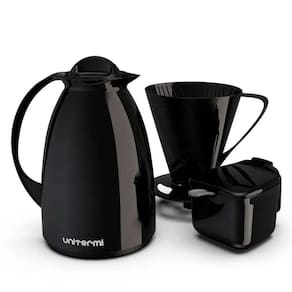 Esta garrafa será o companheiro para manter seu café fresco e quente. Com design elegante e cores vibrantes, a garrafa possui uma excelente capacidade, e com o açucareiro e suporte filtro inclusos você terá tudo o que precisa para desfrutar de uma bebida quente. O suporte filtro permite que você prepare seu café diretamente na garrafa, sem precisar de outras ferramentas. Além disso o conjunto é prático e fácil de limpar , com a garrafa que contém bico anti-gota, alça arredondada e uma grande base de apoio. A conservação da temperatura do líquido é garantida por 4 (quatros) horas, podendo variar de acordo com a temperatura inicial do líquido e o número de vezes que a garrafa foi aberta. -1 Suporte Para Filtro De Café 102 e 103 -Livre de BPA ESPECIFICAÇÕES: Material: Ampola de vidro Demais Peças em Plástico Polipropileno Dimensões -Cafeteira: Alt.: 22cm x Diâmetro: 9cm -Filtro: Alt.: 19cm x Diâmetro: 12cm -Açucareiro: Alt.: 8cm x Diâmetro: 9cm Capacidade: -Cafeteira: 650ml -Açucareiro: 350ml Peso: -Cafeteira: Aprox. 414g -Filtro: Aprox. 77g -Açucareiro: Aprox. 53g CONTÉM: 01 GARRAFA TÉRMICA 01 COADOR FILTRO 01 AÇUCAREIRO 01 COLHER