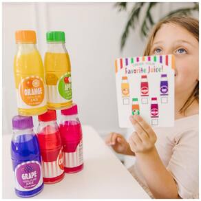 Este conjunto de garrafas de suco Melissa Doug Tip Sip Toy é perfeito para crianças de 3 a 5 anos que adoram brincar de cozinha, fazer piqueniques ou brincar de supermercado. As garrafas duráveis vêm em cinco sabores diferentes uva, laranja, cranberry, maçã e frutas vermelhas. O cardápio reutilizável oferece combinações criativas para estimular ideias de brincadeiras e promover habilidades de aprendizagem precoce, como reconhecimento de cores, linguagem e desenvolvimento sensorial. Este conjunto é um ótimo presente para crianças na faixa etária indicada. Complemente a experiência de jogo prática e sem tela com o conjunto Melissa Doug Wooden Grill Serve BBQ. A Melissa Doug tem mais de 30 anos de experiência em criar produtos lindamente projetados que estimulam a imaginação e a criatividade das crianças, sendo considerada o padrão ouro nas brincadeiras da primeira infância pela NBC News. A Melissa Doug também se orgulha de sua parceria com a Academia Americana de Pediatria para promover o desenvolvimento inicial do cérebro e ajudar as crianças a desenvolver habilidades importantes para a vida por meio de brincadeiras.