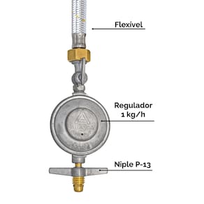 Especificações Técnicas Mangueira flexível: Revestida em aço inox 304 com borracha de alta resistência, conforme norma NBR 14955.Pressão máxima de trabalho: 7 bar.Temperatura máxima de operação: 120°C.Dimensões da mangueira: 3/8” (I) x 1000 mm.Adaptador de aperto rápido: Para instalação prática e segura.Regulador de gás: Vazão de 1 kg/h (modelo Aliança 503/10), garantindo um fluxo estável e eficiente.Comprimento da mangueira: 100 cm.Diâmetro da mangueira: 1,6 cm. BenefíciosDurabilidade Superior