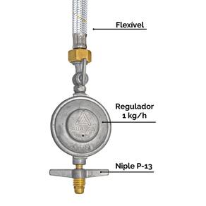 Especificações Técnicas Mangueira flexível: Revestida em aço inox 304 com borracha de alta resistência, conforme norma NBR 14955.Pressão máxima de trabalho: 7 bar.Temperatura máxima de operação: 120°C.Dimensões da mangueira: 3/8” (I) x 2000 mm.Adaptador de aperto rápido: Para instalação prática e segura.Regulador de gás: Vazão de 1 kg/h (modelo Aliança 503/10), garantindo um fluxo estável e eficiente.Comprimento da mangueira: 200 cm.Diâmetro da mangueira: 1,6 cm. BenefíciosDurabilidade Superior