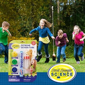 PRODUCTO INTERNACIONAL. O kit de experimentos Steve Spangler Science Extreme Geyser Tube é a opção perfeita para uma atividade divertida em família! Com todas as peças que você precisa, exceto uma garrafa de refrigerante, conecte o tubo com uma das 3 tampas diferentes e deixe cair alguns doces Mentos para ter ação de cair o queixo e voar alto! Esse experimento é perfeito para estimular a imag