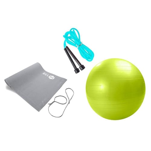 Kit Ginástica Com Bola 55cm, Corda E Tapete Belfix Entre em forma e deixe a sua saúde em dia com o Kit ginástica Belfix com bola, corda e tapete. A bola de ginástica 55cm Belfit é feita em polivinil com sistema antiderrapante e sistema Anti-Burst não estoura . A corda de pular Light é feita em PVC e possui comprimento ajustável máximo 275 cm . O tapete Easy Mat é feito em NBR e possui corda para enrolá-lo, além de ser perfeito para prática de pilates, yoga e outros exercícios no solo. Atributos do Produto: Referência: KITBELFIX Código: KITBELFIX Código de Barras: 7898888801221 Cor: Multicor : 3 Meses Marca: Belfix Modelo: Belfit Detalhes e Especificações Técnicas: Bola de ginástica 55cm Belfit Feita em polivinil Sistema antiderrapante Sistema Anti-Burst Não estoura Corda de pular Light Feita em PVC Comprimento ajustável máximo 275 cm Tapete Easy Mat Feito em NBR Com corda para enrolar Comprimento/largura/espessura 173x61x0,6 cm Perfeito para prática de pilates, yoga e outros exercícios no solo Dimensões do Produto: Altura: 10,0 cm Largura: 20,0 cm Comprimento: 25,0 cm Peso: 1,0 Kg Conteúdo da Embalagem: 01 Bola de ginástica 55cm Belfit 01 Corda de pular Light Belfit 01 Tapete Easy Mat Belfit Importante Produtos de decoração não inclusos. Imagens meramente ilustrativas; As cores dos objetos podem sofrer alterações devido a luminosidade, configurações do monitor e até mesmo a percepção do usuário; Os dados divulgados são de responsabilidade do fabricante/fornecedor. Marca: Não Informado