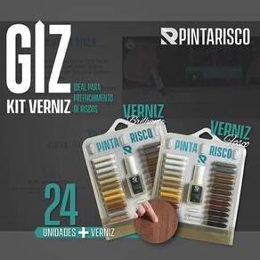 O Giz Pinta Risco para Correção e preenchimento de riscos é ideal para para você que precisa de algum reparo na sua casa, em seus móveis ou piso, para marceneiros, montadores de pisos laminados, profissionais que necessitam de um produto fácil para correção ou preenchimento de riscos e arranhões.O Kit Giz PINTA RISCO contém por 24 cores, baseados nos MDF's mais consumidos do mercado.Dimensão: 40 X 8mm cada.Modo de uso:1 - Escola a cor desejada2 - Passe o Giz no sentido CONTRARIO a falha3 - Retire o excesso com uma espatula4 - Passe delicadamente uma flanela seca sobre a área, em movimentos circulares Marca: Não Informado Ean: 1000000162264