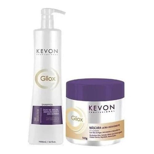 Kit Gliox Profissional Shampoo 1 Litro + Máscara 550 G KevonSHAMPOO GLIOX 1 LITROO Shampoo Pré-redutor foi desenvolvido a partir da combinação perfeita de óleo de Argan, aminoácidos e macadâmia, agindo como pré-redutor, preparando o fio para o tratamento de redução de volume.MODO DE USAR:Lave o cabelo com o shampoo Gliox pré-redutor e dê uma pausa de 2 minutos. Em seguida enxágue retirando 80% da água com auxilio de secador e desembarace-o. Aplique o passo 2 do tratamento, o Redutor.MÁSCARA GLIOX 550 GA Máscara Gliox foi desenvolvida para atuar na reposição e proteção dos fios após a redução de volume. Garantindo aos fios mais nutrição e prologando o efeito liso proporcionado pelo Redutos Gliox.MODO DE USAR:Lave os cabelos com um dos shampoos de manutenção Kevon Profissional, que possuem em sua composição princípios ativos que se auxiliam a máscara para um resultado eficiente. Após o uso do shampoo, aplique a máscara mecha a mecha e deixe agir por 10 minutos. Enxágue e finalize.
