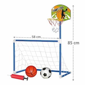 Kit golzinho com basquete trave futebol rede 2 bolas e bomba brinquedo para criança Brinquedo 2 em 1 - golzinho e aro de basquete