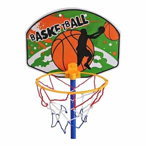 Conteúdo da embalagem: 1 - bola de basquete em vinil 1 - bola de futebol em vinil 1 - bomba de ar manual 1 - suporte para pendurar a tabela na porta 1 - tabela de basquete 7 - tubos longos 5 - junções em l 1 - junção em t 4 - ponteiras fixadoras 1 - rede para o gol