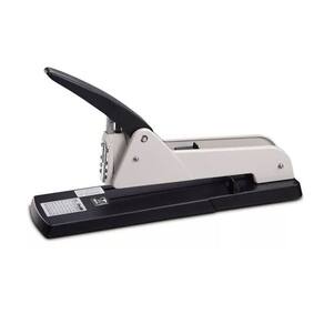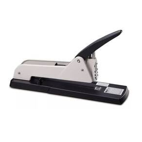 O grampeador profissional metal longo alcance 250 mm para até 200 folhas é uma ferramenta robusta e pensada para quem precisa unir grandes volumes de papel com rapidez e segurança. Feito em metal resistente, ele oferece maior durabilidade e firmeza do que os grampeadores comuns, suportando uso intenso em ambientes como escritórios, gráficas, repartições públicas, escolas e papelarias. O longo alcance de 250 mm permite grampear documentos bem no centro ou em áreas mais profundas da folha, o que é ideal para relatórios espessos, pastas, fichários e materiais encadernados, garantindo que tudo fique bem preso e profissionalmente apresentado. Por ser projetado para até 200 folhas por vez, ele reduz o tempo gasto organizando pilhas de papel, evitando múltiplas grampeações e mantendo os documentos alinhados e seguros. Além disso, a construção metálica confere estabilidade ao equipamento, diminuindo a chance de travamentos ou falhas durante o uso. O design geralmente inclui alavanca ergonômica que facilita a aplicação da força, tornando o grampeamento menos cansativo mesmo em tarefas maiores. É a escolha certa para quem busca eficiência, confiabilidade e precisão na organização de papéis volumosos no dia a dia. Grampeador de longo alcance, modelo 5000. Este grampeador profissional possui corpo e estrutura em metal, proporcionando a força necessária para grampear até 200 folhas de maneira ágil e prática. Possui ajuste de profundidade de até 25 cm e capacidade para armazenar até 200 grampos.