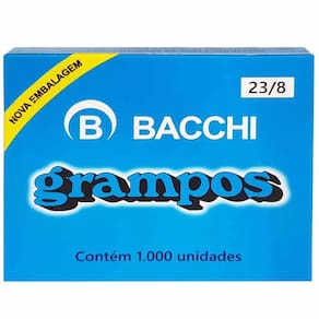 Grampos O Grampo Para Grampeador 23/8 Galvanizado Caixa C/1000 Unidades Bacchi é perfeito para uso em escritórios ou gráficas, para ser utilizado em grampeadores com perfuração entre 20 e 50 folhas.
