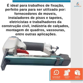 Inclui:1 Grampeador pneumático Rocama 80W1 Grampo para grampeador pneumático 80/06mm Rocama - 6000 GramposGrampeador Pneumático Profissional 80w Rocama DESCRIÇÃO DO PRODUTO:O Grampeador Pneumático Rocama é ideal para trabalhos de fixação, perfeito para para ser utilizado por: fornecedores de moveis, instaladores de pisos e tapetes, eletricistas e trabalhadores da construção civil, indústria de calçados, montagem de quadros, vassouras, entre outras aplicações. É indispensável para profissionais que necessitam de alta produtividade e um equipamento de qualidade, versátil e pode realizar muitas funções de fixação pesadas.BENEFÍCIOS:O Grampeador Pneumático Rocama é leve e muito fácil de ser operado, sendo muito versátil, proporciona uma fixação mais precisa e segura, com maior agilidade sem fazer força para usar o grampeador, possui bico longo que facilita a aplicação em cantos e locais de difícil acesso, com baixo nível de ruído e alta velocidade.CARACTERÍSTICAS:O Grampeador Pneumático Rocama é fabricado com material de alta qualidade, com trava de segurança e mínimo índice de manutenção, com baixo nível de ruídos, e alta velocidade. É recomendado utilizar o grampo da linha 80/10 grampos Gram Serv.INFORMAÇÕES GERAIS:Comprimento: 215mm x Altura: 160mm - Peso: 0,75kg Pressão normal de operação: 60-100PSI (4.14-6.89bar) Capacidade de grampo: 120pcsGrampo para grampeador pneumático 80/06mm Rocama Esse grampo garante alta performance e firmeza para suas atividades. CaracterísticasModelo: 80/06Aplicação: Grampeador Rocama 80Especificações:Material: Aço;Acabamento: Zincado;Marca: Rocama