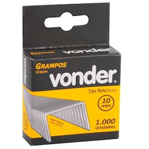 - Marca: Vonder - Referência: 2898406012 - 1.000 Grampos de 6mm de Altura - 1.000 Grampos de 8mm de Altura - 1.000 Grampos de 10mm de Altura - Largura do grampo: 11,4 mm - Medidas do arame: 1,2 mm - Caixa com 1.000 grampos - Material do grampo: aço carbono - Tipo do grampo: reto - Possui acabamento zincado, proporcionando maior resistência à oxidação/corrosão - Garantia: 90 dias