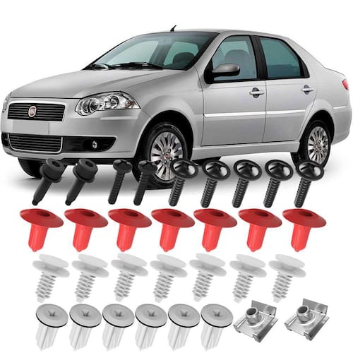 Kit com 31 Peças Grampos Presilhas Buchas e Parafusos Para Forro Porta Dianteira Siena G4 2008 até 2012