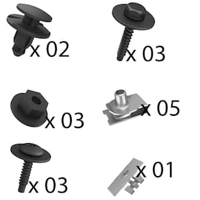 Especificação Técnica do Kit: Kit com 17 Peças Para Fixação do Para-barro Dianteiro Este Kit Permite a Fixação de Apenas 01 (UM) Para-barro Grampos e Porca Fabricados em Plástico de Alta Resistência Parafusos e Porcas Rápida Fabricados em Metal de Alta Resistência Alta Durabilidade Fácil Instalação Ótimo Acabamento Encaixe Perfeito O Para-barro não Acompanha o Kit de Fixação!