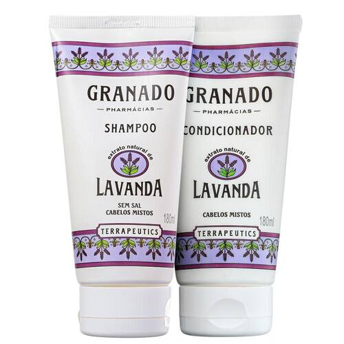 Kit com shampoo e condicionador para cabelo misto. Granado Terrapeutics Lavanda Cabelo Misto Equilibrado Kit regula a oleosidade do couro cabeludo enquanto preserva a hidratação e a maciez dos fios com o resgate das pontas ressecadas.