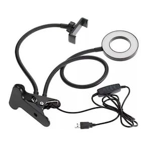 Kit Gravação Ring Ligth Suporte Celular com Controle Kit Gravação Ring Light Suporte Celular Com Controle por maquiadores, youtubers, barbeiros, fotógrafos entre outros profissionais. Este modelo de Ring Light vai te proporcionar a iluminação perfeita para fotografar ou gravar seus trabalhos para as redes sociais ou o seu canal Excelente para criar vídeos , seja com smartphone ou computador. Faça vídeos com qualidade ou tire ótimas fotos de selfie com este suporte ring light. Hastes flexíveis que podem dobrar para qualquer direção, suporte de rotação do smartphone 360 graus e grampo para fixação em mesas, bancadas, prateleiras, etc. Possui configurações de matiz e brilho para obter a iluminação certa, basta escolher entre 3 modos de luz e 9 níveis de brilho para os seus usos preferidos: maquiagem, flat lay, fotos de selfie, vlogging, cenários escuros, etc. Detalhes: - Modelo: - Peso: 480g - 3 modos de luz branca, amarela e mista e 9 níveis de brilho - Potencia: 12w - Material: Aço e plástico ABS - Compatibilidade: Largura máxima aproximada do suporte telefone é de 8,6 cm - Conexões: USB 5V Tamanho: - Cabo USB: 1,20 m - Altura máxima aproximada: haste ring light 61,5 cm, haste smartphone 34,5 cm e Diâmetro aproximado do ring light: 8,5 cm Conteúdo: - 1 Iluminador ring light com suporte articulado de mesa para celular smartphone com controle - 1 Suporte para o celular smartphone Homologação Anatel: 080281811799 Marca: Não Informado Ean: 7895772592296
