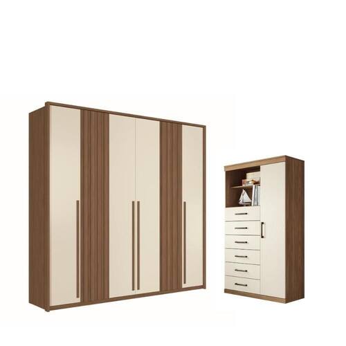 A comoda possui 2 portas,5 gavetas e 1 cabideiro, garantindo um amplo espaço para armazenar desde sapatos e roupas a todos os tipos de itens.
