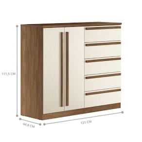 A comoda possui 2 portas,5 gavetas e 1 cabideiro, garantindo um amplo espaço para armazenar desde sapatos e roupas a todos os tipos de itens.