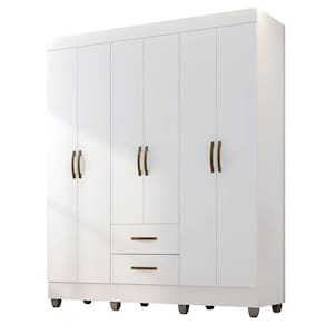 Características do Guarda-Roupa Casal 6 Portas 2 Gavetas Lisa: - Estrutura em MDP; - Pintura UV velluto; - Puxadores em PVC; - Pés em PVC; - 2 Gavetas com corrediças metálicas; - 6 Portas de bater; - Não acompanha objetos decorativos nem roupas; - Montagem por conta do comprador;