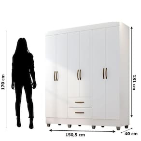 - Não nos responsabilizamos pela montagem dos produtos. Todos os produtos acompanham acessórios para que sejam montados.; - Não nos responsabilizamos, no ato da , por subir escadas/elevadores ou por guincho em apartamentos.; - Eventuais despesas são de responsabilidade do comprador; - Confira as dimensões deste produto e certifique-se de que passará normalmente por supostos elevadores, portas, escadas e/ou corredores de sua residência; - Não aceitamos de produtos com caixas violadas ou materiais danificados, confira a quantidade de volumes e se o que está sendo entregue corresponde com a mercadoria adquirida, não aceitamos após o prazo de arrependimento de 7 dias corridos. Características Gerais do Produto: - Altura: Guarda-Roupa: 181 cm; Cômoda: 92 cm; - Gavetas: Guarda-Roupa: 2 Gavetas com corrediças metálicas; Cômoda: 4 Gavetas com corrediças metálicas; - Ideal para: Quarto - Informações Adicionais: Guarda-Roupa: Possui 5 prateleiras internas; Não acompanha objetos de decoração nem objetos de vestuário; Cômoda: Não acompanha objetos decorativos; - Largura: Guarda-Roupa: 150,5 cm; Cômoda: 81,5 cm; - Material: MDP - Pintura: Pés e puxadores em PVC; - Portas: 6 Portas - Profundidade: Guarda-Roupa: 40 cm; Cômoda: 39 cm; - Tipo de Porta: Porta de Bater - Acabamento: Pintura UV velluto - Informações Adicionais: - Não nos responsabilizamos pela montagem dos produtos. Todos os produtos acompanham acessórios para que sejam montados.; - Não nos responsabilizamos, no ato da , por subir escadas/elevadores ou por guincho em apartamentos.; - Eventuais despesas são de responsabilidade do comprador; - Confira as dimensões deste produto e certifique-se de que passará normalmente por supostos elevadores, portas, escadas e/ou corredores de sua residência; - Não aceitamos de produtos com caixas violadas ou materiais danificados, confira a quantidade de volumes e se o que está sendo entregue corresponde com a mercadoria adquirida, não aceitamos após o prazo de arrependimento de 7 dias corridos.