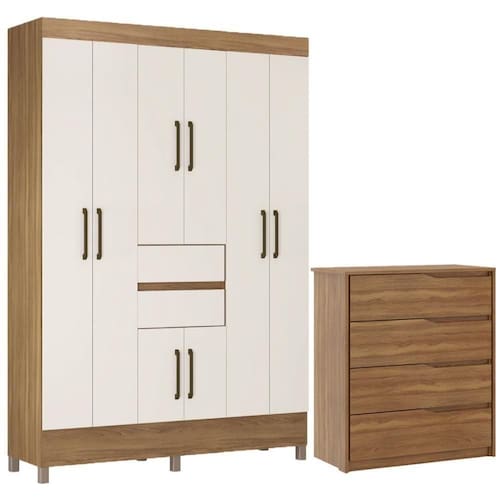 Kit Guarda Roupa Casal 8 Portas Munique Cômoda Atria
