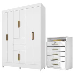 Kit Guarda Roupa Casal 8 Portas Munique Cômoda Triunfo - Branco Branco