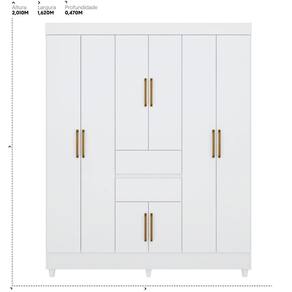Material: MDP | Cor: Branco | Guarda Roupa Altura x Largura x Profundidade: 2,01 x 1,62 x 0,47 | Cômoda Altura x Largura x Profundidade: 1,11 x 0,86 x 0,42 | Material do Guarda Roupa: MDP | Material da Cômoda: MDP | Quantidade de Portas Guarda Roupa: 8 | Quantidade de Gavetas Guarda Roupa: 2 | Quantidade de Gavetas Cômoda: 5 | Cômodo Indicado: Quarto | Possui Prateleira: Sim | Possui Gaveta: Sim | Tipo da Corrediça da Gaveta do Guarda Roupa: Metálica | Tipo da Corrediça da Gaveta da Cômoda: Metálica | Tipo de Porta do Guarda Roupa: Giro | Material da Dobradiça: Metálica | Possui pés: Sim | Material dos Pés: PVC | Possui Espelho: Não | Quantidade de espelhos: 0 | Nome do Simples no Fornecedor: Kit Guarda Roupa Casal Munique e Cômoda Triunfo - Branco | Garantia do Fabricante: 3 Meses | Instruções/Cuidados: Evite contato com líquidos. Nada de lavar os móveis. Móveis não gostam de umidade. Não deixe o móvel exposto ao sol. Os acessórios também precisam de limpeza. | Material para Filtro: MDP | Quantidade de Volumes: 3 | Peso Bruto: 120.4 | Material da Estrutura: MDP | Necessita Fixação na Parede: Não | Conteúdo Embalagem: Guarda Roupa Casal e Cômoda | Origem: Nacional | Estado de Origem: Paraná | Peso Bruto (volume 01): 41,7 Kg | Comnto x Largura x Altura (volume 01): 1,97 x 0,47 x 0,09 | Peso Bruto (volume 02): 37,5 Kg | Comnto x Largura x Altura (volume 02): 1,72 x 0,56 x 0,07 | Peso Bruto (volume 03): 41,20 Kg | Comnto x Largura x Altura (volume 03): 1,12 x 0,45 x 0,16 Cor: Branco