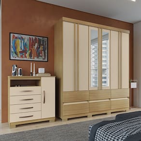 Kit Guarda Roupa Casal Arizona 6 Portas Com Espelho e Cômoda 1 Porta e 4 Gavetas Aspen I01 - Clique Chique Móveis