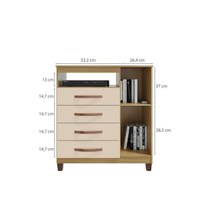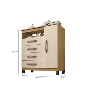 Capacidade: 4 gavetas e 1 porta para armazenar roupas e acessórios.