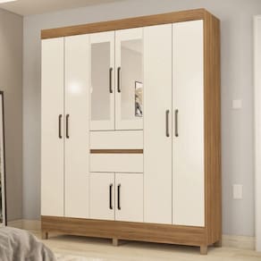 Kit Guarda Roupa Casal Com Espelho 8 Portas Munique Cômoda Astral