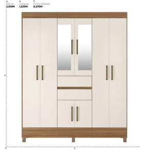 O Guarda-Roupa Munique oferece cabideiros, prateleiras amplas, espaço para sapatos e gavetas externas para roupas íntimas. Com espelho nas portas e pés em PVC, ele garante organização, estilo e praticidade para seu quarto.