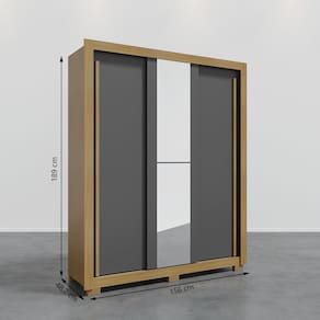 Dimensões: Altura de 189cm, Largura de 156cm e Profundidade de 48cm.