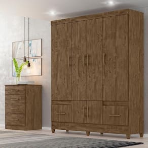 Com esse Kit de Guarda roupa + Cômoda seu quarto vai ficar completo, o kit contém um design simples e elegante.