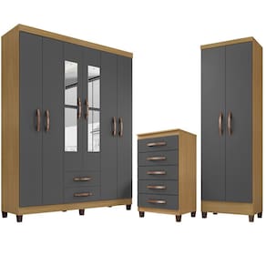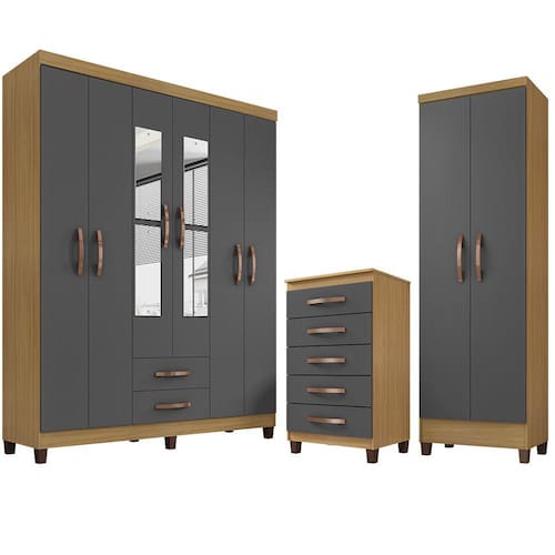 Este Guarda Roupa Casal é a escolha ideal para quem procura uma solução prática e elegante para armazenar sua roupa. Com um design moderno e sofisticado, além de uma disposição interna especialmente projetada para assegurar um excelente espaço de armazenamento, ele será o ponto focal do quarto de Casal. O Guarda Roupa Casal Porto Belo 6 Portas 2 Gavetas com Espelho Carvalho Grafite Clique Chique é confeccionado com MDP 12mm, e possui 6 portas de giro e 2 gavetas externas para que tenha fácil acesso àqueles itens de uso diário, trazendo praticidade ao seu dia a dia! Imagine ter todas as suas roupa organizadas e à mão, sem precisar perder tempo procurando o que vestir? Muito bom, não é mesmo? Adquira já o seu Guarda Roupa Casal Porto Belo 6 Portas 2 Gavetas com Espelho Carvalho Grafite Clique Chique e desfrute da comodidade e da beleza que ele pode trazer ao seu quarto!