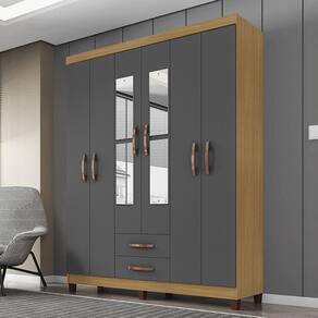 Guarda Roupa Casal Porto Belo 6 Portas 2 Gavetas com Espelho Carvalho Grafite Clique Chique