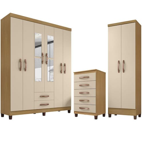 Outros recursos: Produto com corrediças, dobradiças e cabideiro metálicas. Puxadores em pvc Bronze.