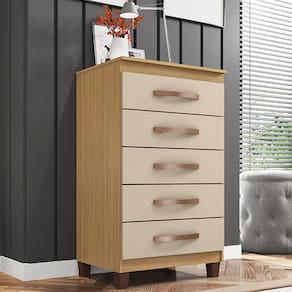 Cômoda 5 Gavetas Porto Belo Carvalho Off White Clique Chique