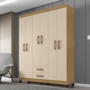 Guarda Roupa Casal Porto Belo 6 Portas 2 Gavetas Carvalho Off White Clique Chique