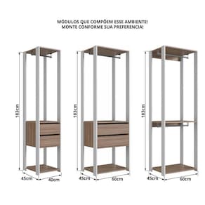 - Modelo: Kit Guarda Roupa Closet 03 Peças 183X60cm PRODDY
