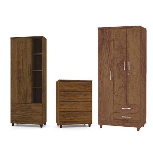 Jogo De Quarto Guarda Roupa Line 3pts, Estante Paris E Cômoda Rio Imbuia - Vila Rica