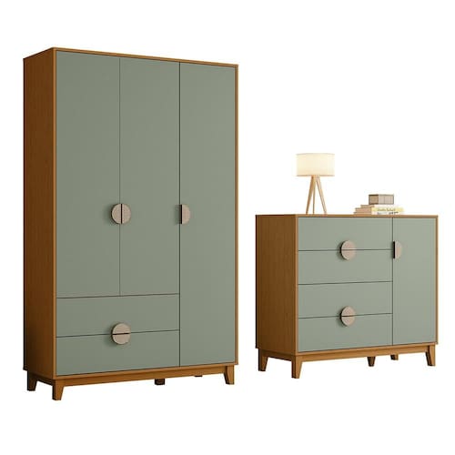 Este conjunto de guarda roupa e cômoda é o complemente perfeito para o seu quarto. Com um design moderno e funcional, estes móveis oferecem espaço de armazenamento extra para manter o seu espaço organizado e elegante. Adicione um toque de sofisticação ao seu espaço com este conjunto de guarda roupa e cômoda.