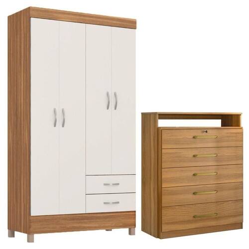 Kit Guarda Roupa Solteiro 4 Portas Astro Cômoda Triunfo