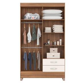 O Guarda-Roupa Astro é a solução ideal para quem busca mais espaço e praticidade no quarto. Com cabideiro, calceiro, prateleiras internas e maleiro, ele oferece diversas opções para organizar suas roupas e acessórios. Além disso, conta com duas gavetas para itens pequenos e pés em PVC, que protegem o móvel da umidade, garantindo maior durabilidade.