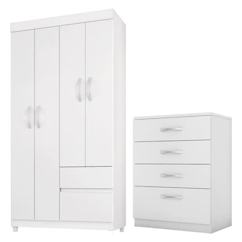 Kit Guarda Roupa Solteiro 4 Portas Lótus Cômoda Astral