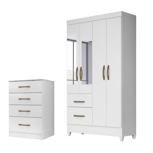 O Guarda Roupa Madri e Cômoda Ms vai deixar seu quarto mais agradável, um produto que reúne modernidade e praticidade com tamanho compacto, mas com excelente distribuição interna, ele agrega organização e design e qualidade ao seu quarto.