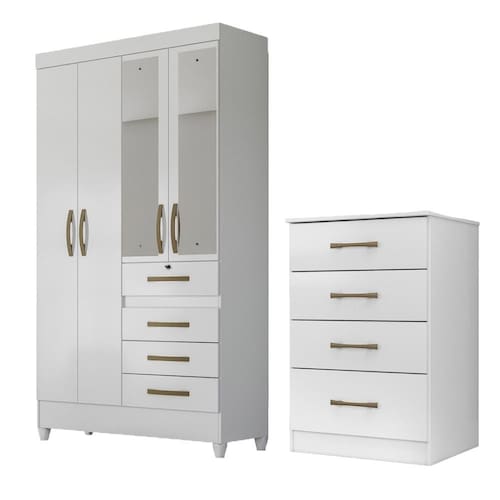 O Guarda Roupa Sobral com a Cômoda Ms vai deixar seu quarto mais agradável, um produto que reúne modernidade e praticidade com tamanho compacto, mas com excelente distribuição interna, ele agrega organização e design e qualidade ao seu quarto. O cabideiro é em alumínio, as corrediças metálicas e a pintura é em impressão UV Relevo Fosco.