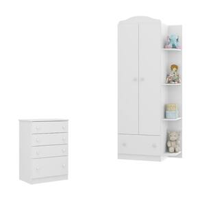 O Kit Guarda-Roupas Infantil 2 Portas 1 Gaveta e Cômoda 4 Gavetas João e Maria Multimóveis MP4210 é fabricado em MDP 12/15mm com acabamento acetinado (cerca de 20% de brilho), garantindo durabilidade e resistência. O guarda-roupas oferece amplo espaço interno para organizar roupas e acessórios, com suas 2 portas equipadas com dobradiças metálicas, 1 gaveta espaçosa, prateleiras e cabideiro em madeira revestido (suporta até 3kg). Já a cômoda conta com 4 gavetas amplas, ideais para armazenar itens e acessórios menores, e sistema antitombamento, adicionando maior segurança. As corrediças metálicas proporcionam um manuseio suave e eficiente, enquanto os puxadores em ABS são práticos e elegantes. Além disso, a possibilidade de escolher entre 4 opções de cores para os detalhes, na hora da montagem, permite personalizar o kit de acordo com o estilo e a decoração do ambiente.