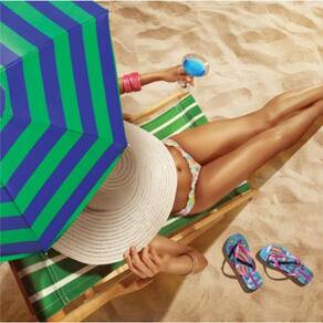Acabamento/Cor do guarda sol: Listrado (Verde/Azul)